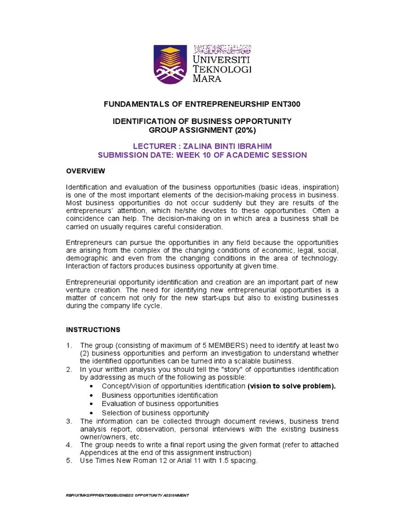View business opportunity ent300.pdf from ent 300 at universiti teknologi mara.